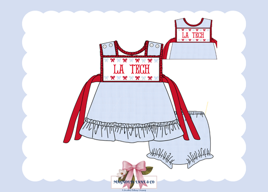 PO23: Girl’s Light Blue & Red Gingham Game Day Bloomer Set/Dress