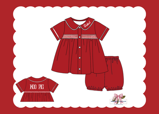 PO23: Boy’s Crimson/Cardinal Red & White Tiny Tailgaters Bubble Shorts Set