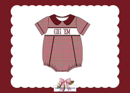 PO23: Boy’s Maroon & White Gingham Game Day Bubble