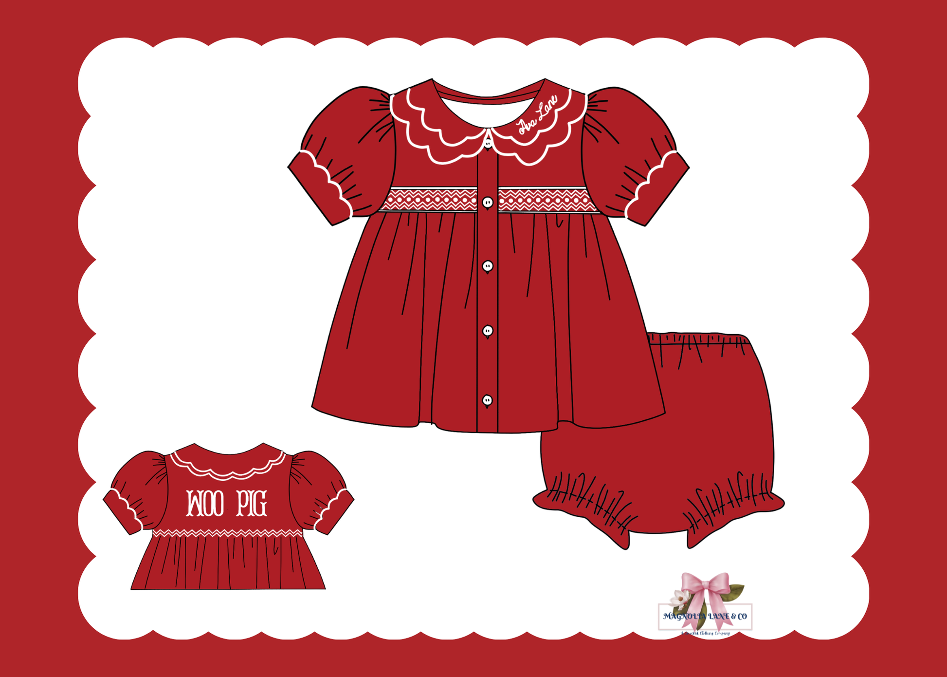 PO23: Girl’s Crimson/Cardinal Red & White Tiny Tailgaters Bloomer Set/Dress